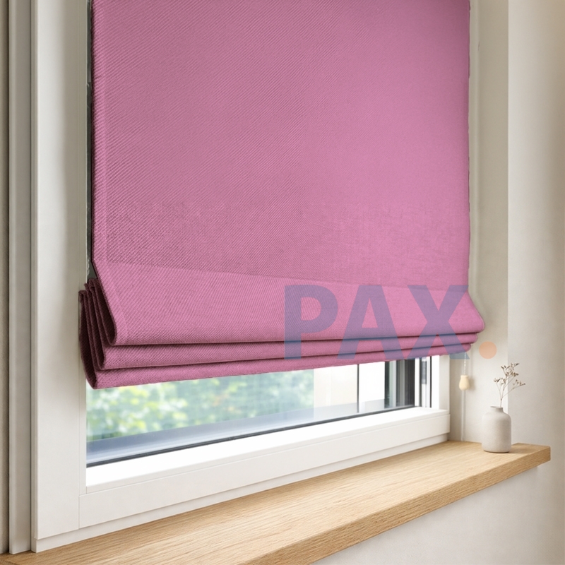 Vouwgordijnen op maat gemaakt met Luxe cassette. Verduisterende stof in de kleur Donker roze. De uni collectie California is een 100% verduisterende stof van zeer hoge kwaliteit met mooie lichte glans. Deze stof is ook beschikbaar als normaal gordijn. De stof heeft een mooi profiel & luxe uitstraling. Ideaal voor de slaapkamer maar ook veel gekocht voor de huiskamer. Kies de gewenste bediening, kleur stof en andere opties. Met de hand gemaakt in Nederland.