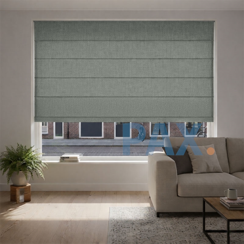 De vouwgordijnen worden exact op maat gemaakt tot 300cm breed en 300cm hoog.